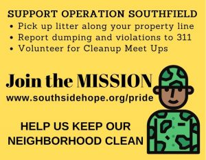 In a partnership with the community, Southside Hope has launched “Operation Southfield”, a monthly neighborhood clean up and meet up initiative.